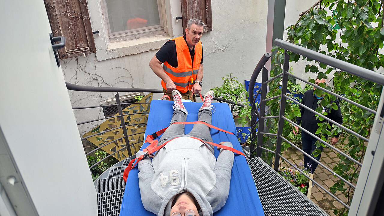Ein unverzichtbares Hilfsmittel für den sicheren Personentransport über Treppen, insbesondere wenn Aufzüge nicht genutzt werden dürfen ist der Evakuierungsstuhl.