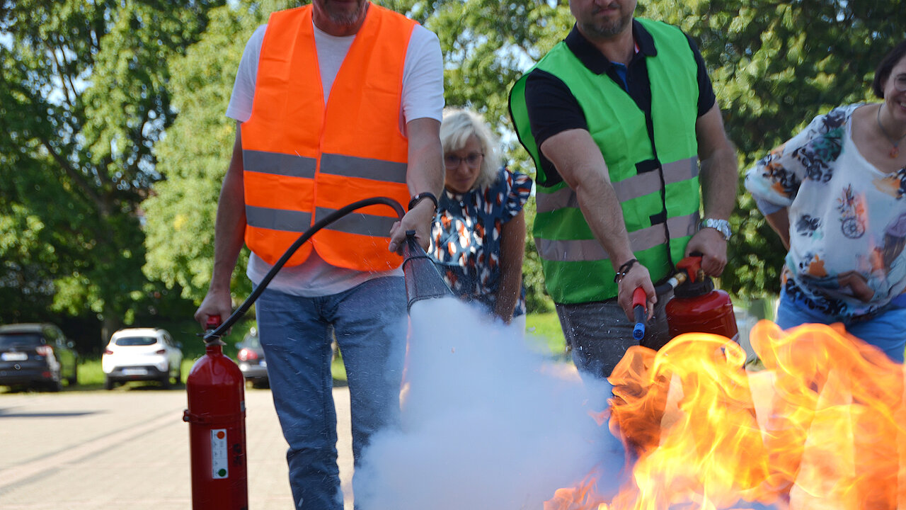 realitätsnahe Übung mit Feuerlöscheinrichtungen, z. B. Simulationsgeräte und –anlagen mit entsprechenden Aufbausätzen